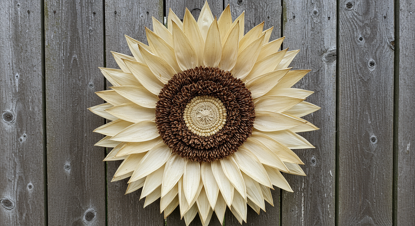 Have your children tear the corn husks into strips a couple of inches wide and then paint some of the cornhusks with gold glitter paint. They only need to paint around 20 of the 1-2″ corn husk strips and 10 feathers. While the glitter pieces are drying, they can start hot gluing the plain corn shucks around the wreath. Tip: work in rows, starting on the outside edge by putting a generous dab of hot glue on the wreath form and then pressing down on the base of the corn husk until the glue set. Then start layering another row of husks in front of that one. For the inner row, they will need to bend the corn husk a bit and apply a generous dab of glue at the base, as well as the midway point of the corn husk so it bends backward and lays flat against the other rows of husks. Hold it in place for a few seconds until it sets. Some of the corn husks can be hard to bend, so use some of the thinner husks for the inside row. Once the glittered husks are dry, put a dab of glue on the bottom back side of the husks and then stuck them in randomly around the wreath.
