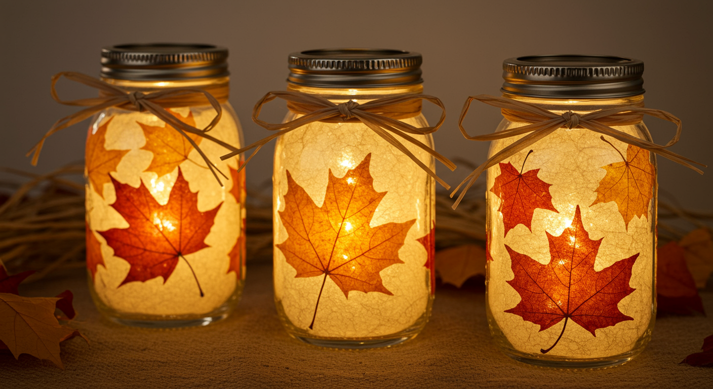 Start by making sure the outside of the jar is clean by giving it a good wipe with rubbing alcohol. Also, the leaves won’t stick if the jar is oily or dirty. Next up: make sure the leaves are malleable by bending them a little bit to loosen them up (stiff leaves won’t stick either). If they are thin, fabric leaves, they should easily form around the jar and if they are real leaves, you should dampen them slightly to unstiffen them. Ironing the fabric leaves will also loosen the fibers. To decoupage, you should dip your brush or your fingers in the Mod Podge and paint a thin layer on a section of the jar. Once that layer becomes quite sticky (check by dabbing your finger on it), stick a leaf on the jar. Paint more Mod Podge on top of the leaf in thin layers, making sure to smooth out the edges. You can do this by starting in the center of the leaf, and pushing your way out to the edges with your fingers. It may take a few layers, but the leaf should stick to the jar. Don’t be afraid to use your fingers to smooth out the leaf so that it is fully secure. Layer more leaves on top, filling the jar and once all the leaves are on, it will take a few hours to dry completely.