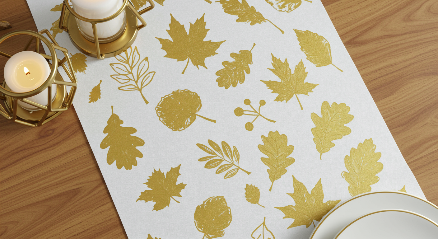Have the kiddos unroll the paper and cut it to size to fit your table - be sure to allow a little extra to hang off each edge of the table. Depending on the width of the paper you may want to fold it under to make the runner narrower. Handle the paper with some care to avoid putting too many wrinkles in it. Using the stencil and craft paint start making whatever pattern you want down the middle of the runner and then let dry and roll up the runner until you plan to use it!