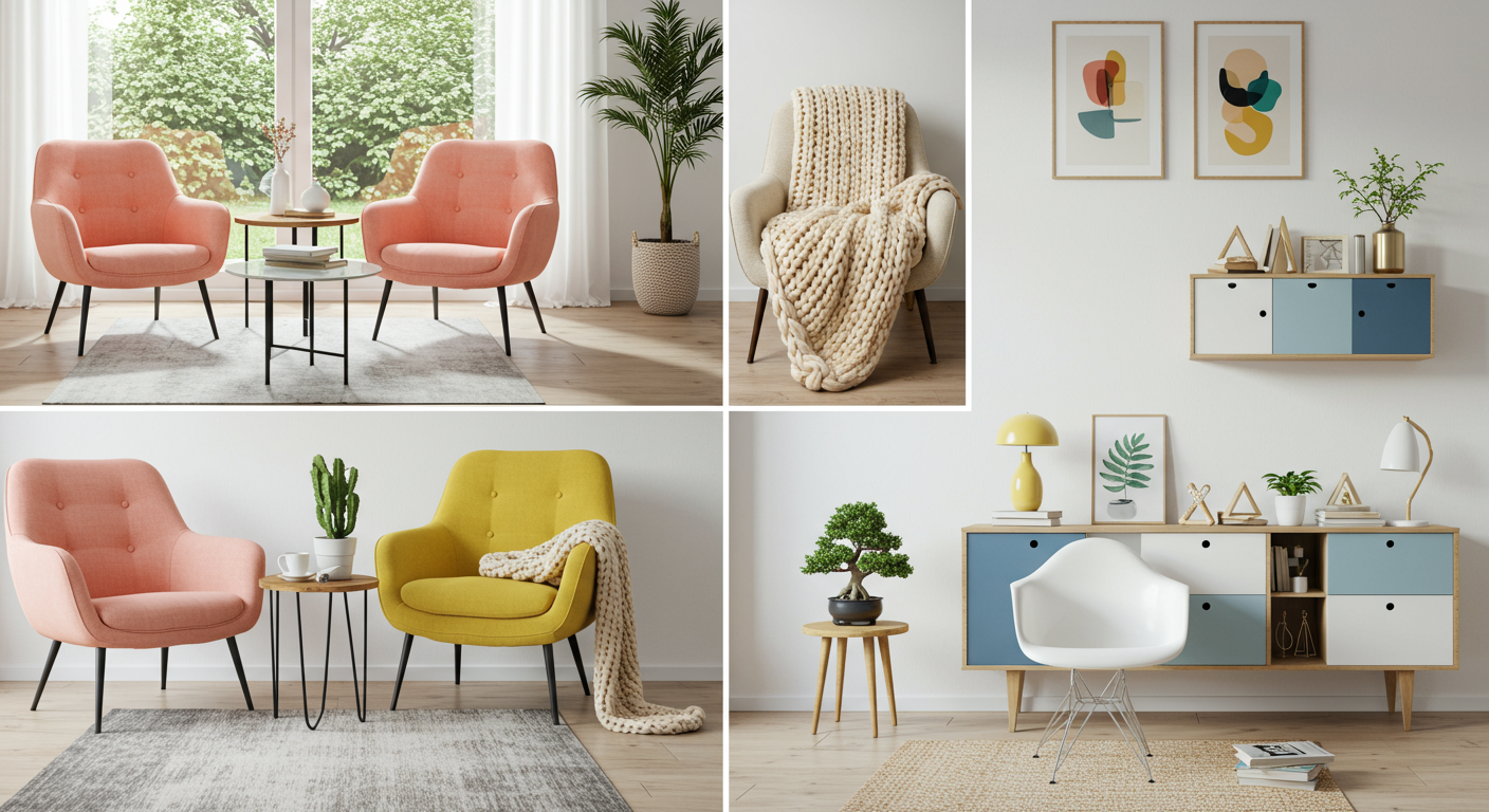 A colorful accent chair can make a world of difference. We don’t need to follow the old norm of matching furniture sets. We can go bold and mix and match. Have fun with color, patterns, and styles. You also don’t need to buy everything new or secondhand, you can also consider reupholstering some existing furniture.