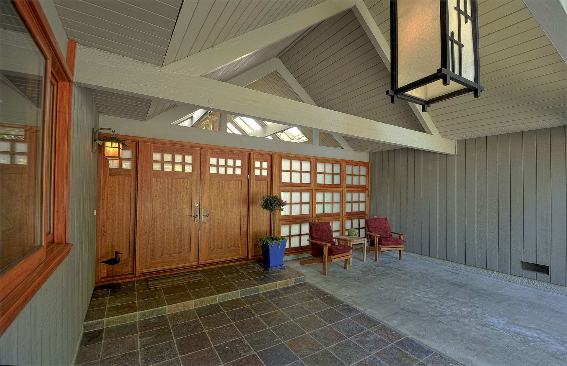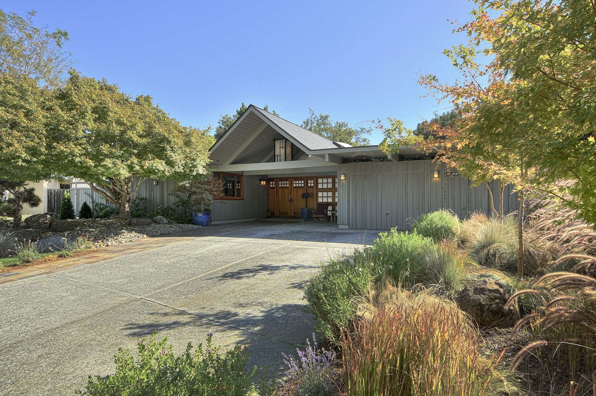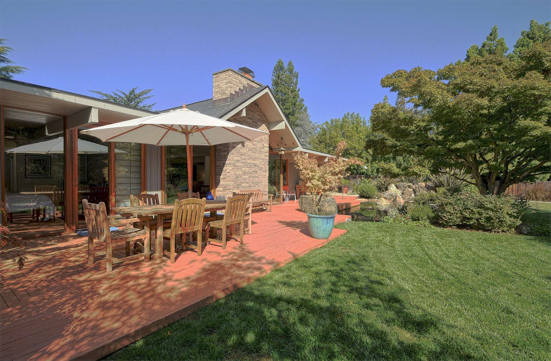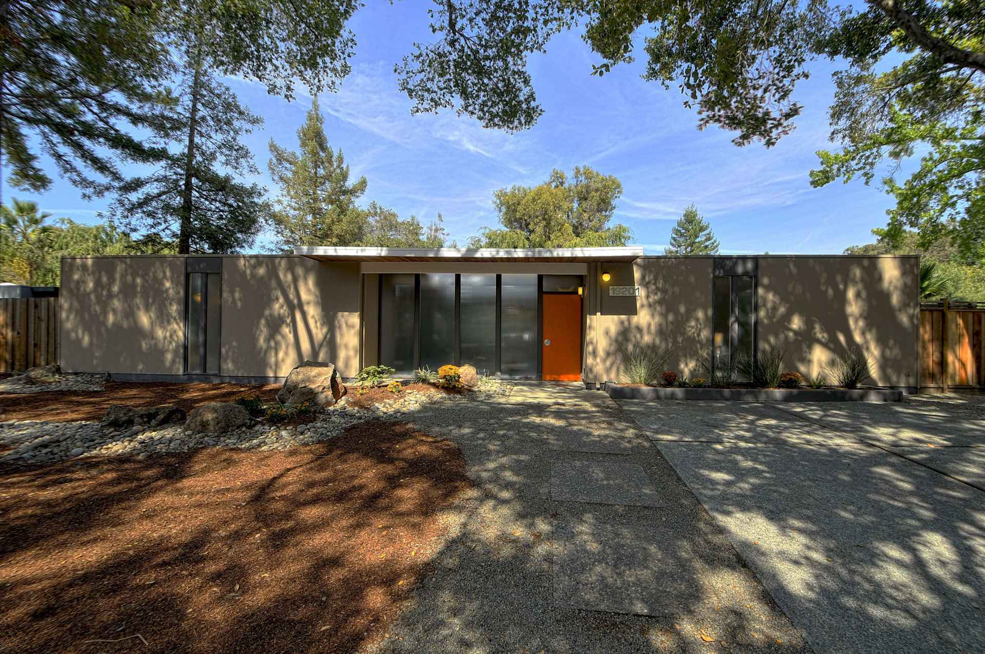 Saratoga is known for its affluence, nature and loads of cultural activities. Located in the southern Bay Area, with a population of 31,051, the town is loved for its wineries, restaurants, Villa Montalvo, Mountain Winery, Hakone Gardens and beautiful homes. Saratoga also offers a small tract of 35 Eichler homes all built between 1964 and 1965. Expect to find gallery and atrium models that are mostly upscale four-bedroom floor plans ranging from 2100-2800 sq ft living space, on approximately 11,500 sq ft lots.  They can be found on DeHavilland Drive, Shubert Drive and Columbine Court.  The larger, more spacious lot sizes are definitely one of the distinguishing characteristics of the Saratoga Eichler neigbhorhood just off of Cox Avenue. There a handful of large homes enjoy an amazing creekside location and some even have swimmingpools, such as this one on DeHavilland Drive.