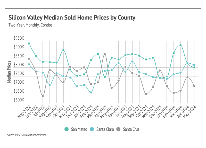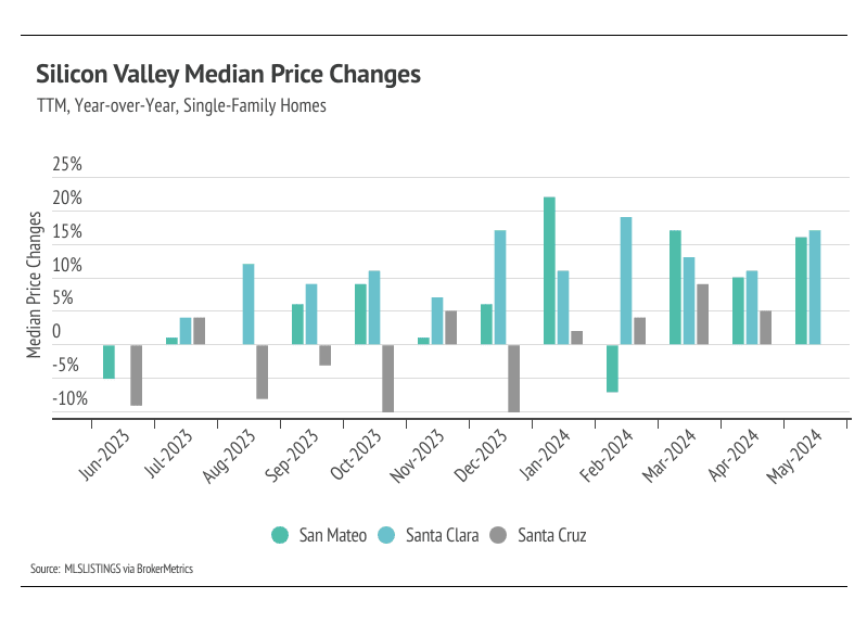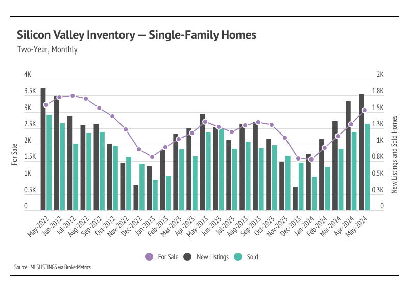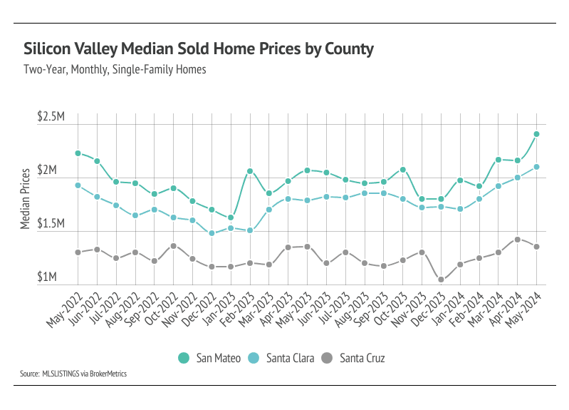 The median single-family home prices in San Mateo and Santa Clara reached record highs in May. As more new listings come to market, we expect prices to continue rising and to reach new highs during the summer months.