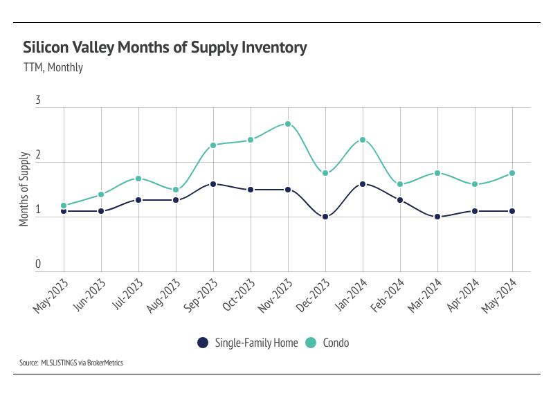 Months of Supply Inventory indicates a strong sellers’ market in Silicon Valley, although more new listings have alleviated some of the excess demand in the area.
