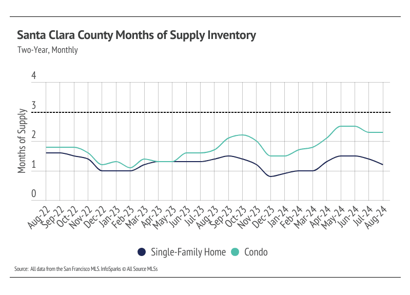Months of Supply Inventory in August 2024 indicated a sellers’ market for single-family homes and condos