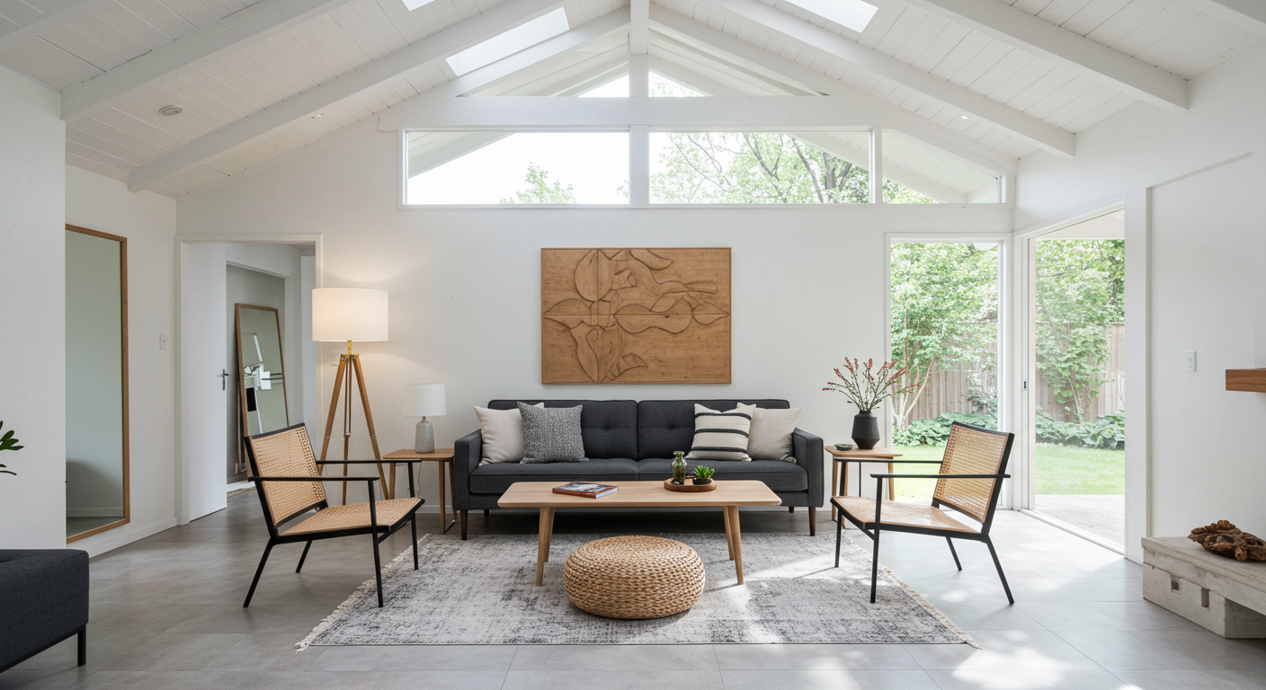 history behind it. We can talk a blue streak about the rich history of Eichlers, but we’ll focus on the creation of the home’s design. Let’s start with the man behind this revolutionary modern architecture: Joseph Eichler. Between 1950 and 1974, Joseph Eichler built over 11,000 homes in nine communities in the Bay Area and three communities in Southern California. Although his design ideas are replicated in states all over the country, the heart of Eichler communities resides and is predominant in the Bay Area. One of our clients, who has been an Eichler homeowner in Sunnyvale for five years, states: “The sense of community between Eichler homeowners is very empowering and I’m proud to be a part of such an interconnected group of individuals. We all work together to keep the neighborhood safe and we’re always there to help each other out.” Joseph Eichler aimed to construct an inclusive and diverse community that worked as one unit, and you can tell that goal was achieved by looking at Eichler neighborhoods in the Bay Area. This whole idea behind taking separate elements and making them flow as one unit is also reflected in the architecture of his homes.