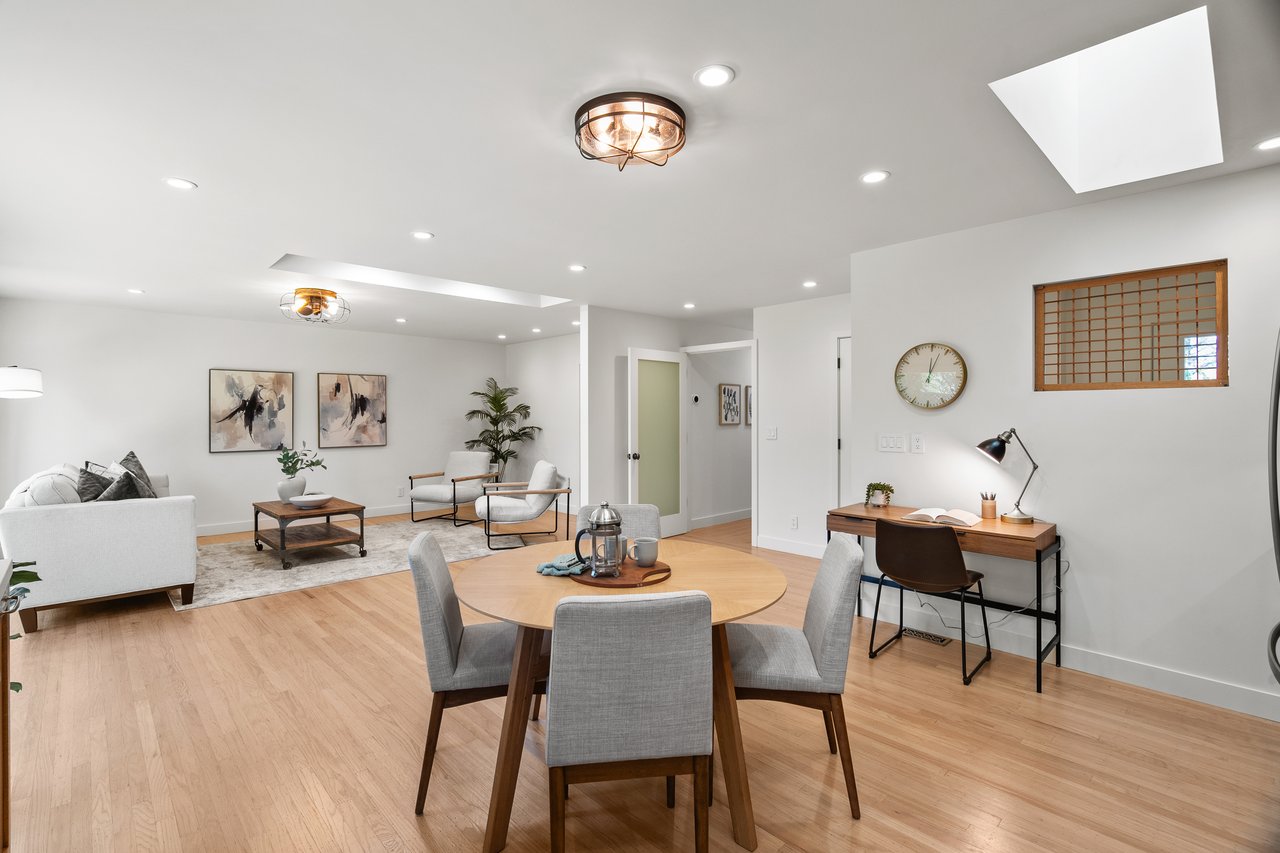 Remodeled with sustainability in mind, this home offers eco-friendly materials, prioritizing efficiency and optimizing natural light. This includes using a low-VOC finish on the original red oak hardwood floors, a new furnace, Milgard double pane windows, upgraded 200 amp panel and owned solar. You’ll find openable skylights and sun tunnels throughout for enhanced natural light. The renovated kitchen features custom red oak cabinets, Dekton countertops, stainless steel appliances, induction range, Kohler cast iron sink, and Brizo pull-down faucet. The primary suite has two-level plantation shutters and a renovated bath. There is a two car garage with EV hookup, plus carport that accommodates up to four cars. Surrounded by lush, drought tolerant, native landscaping, this home sits amongst a natural oasis, composed of a variety of mature trees, California native shrubs, perennials, and wildflowers that have been carefully chosen to create a valuable habitat for birds and your enjoyment. Located in the desirable Cherry Chase neighborhood, walk to Cherry Chase Elem and shopping center with Safeway. Close to nearby Stevens Creek Trail, Mango Park, De Anza Park and an abundance of eateries. Just minutes to downtown Sunnyvale restaurants, shops, Whole Foods, Target and weekly Farmers Market.